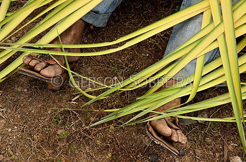 Keywords: Folha, Homem, Idoso, Horizontal, 2012, Piaui, Jose de Freitas, Babaçu, Attalea speciosa, Trançado, Trançando , Palmeira, Telhado, Pe, Sandalia |