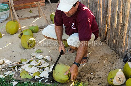 Keywords: Homem, Adulto, Facao, Cocos nucifera, Preparo, Bebida, Agua, Coco, Agua-de-coco, Horizontal, 2012, Piaui, Cajueiro da Praia |