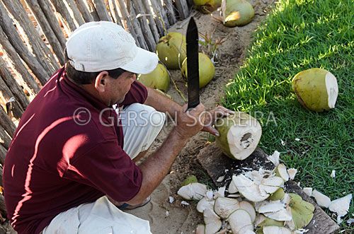 Keywords: Homem, Adulto, Facao, Cocos nucifera, Preparo, Bebida, Agua, Coco, Agua-de-coco, Horizontal, 2012, Piaui, Cajueiro da Praia |