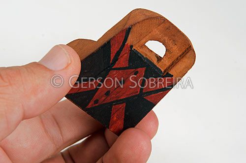 Keywords: Horizontal, Londrina, Parana, 2012, Apito, Pio, Fundo branco, Artesanato, Indigena, Madeira, Objeto, Flauta Nasal |