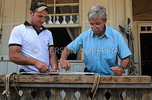 Título: Luiz, trançando uma cilha de 16 fios para mula |
