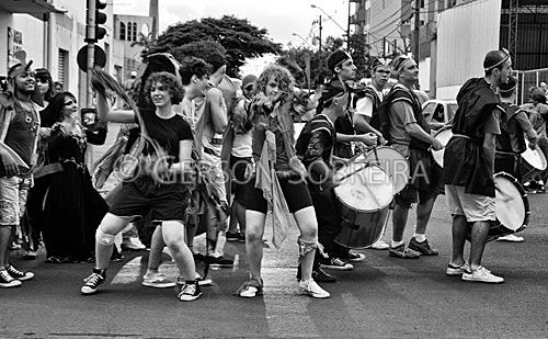 Keywords: Calourada, Gente, 2012, Parana, Londrina, Calouro, Fantasia, Fantasiado, Bateria, Musica, Tambor, Preto e Branco, Horizontal, Cortejo, Urbano, Rua, Universitario |