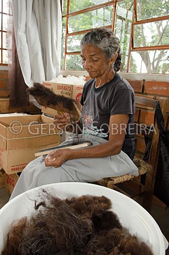 Keywords: Vertical, Parana, 2012, Tibagi, People, Woman, Old aged woman, Craftwork, Fleece, Heckling, Heckle, Disentangling, Comb, Wool comb, Comb, ATIART, Craftswoman, Sheep |