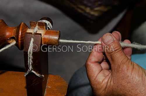 Title: Com a roca, Dona Eloina transforma a lã em fio   |
