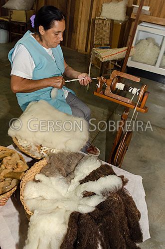 Title: Com a roca, Dona Eloina transforma a lã em fio |