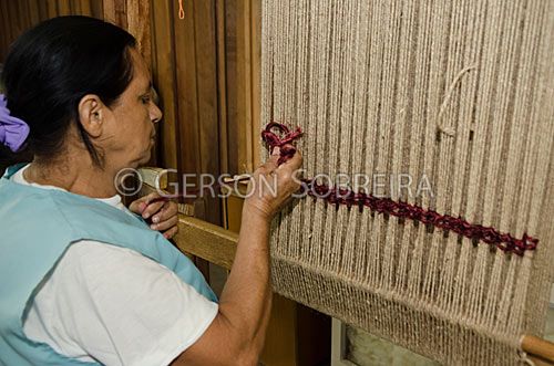 Keywords: Artesa, Ferramenta Instrumento, Equipamento, Parana, 2012, Tibagi, Gente, Mulher, Idosa, Artesanato, ATIART, Horizontal, Tecendo, Tear, Urdidura, Trama, Tecelagem |