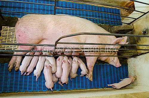 Keywords: Granja, Leitao, Suino, Porco, Animal, 2013, Parana, Teixeira Soares, Porca, Leitegada, Mamando, Horizontal, Baia Maternidade, Parida |