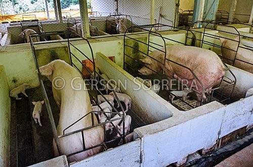 Título: Porca parida em baia maternidade |