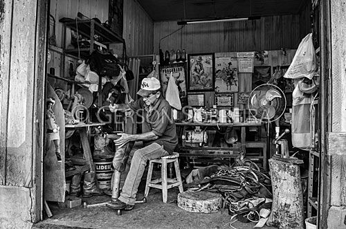 Keywords: Preto e Branco, Sapateiro, Seleiro, Homem, Adulto, Gente, Pitiço, Sapataria, Selaria, 2013, Iguaraçu, Parana, Horizontal |
