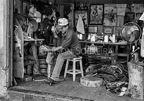 Keywords: Preto e Branco, Sapateiro, Seleiro, Homem, Adulto, Gente, Pitiço, Sapataria, Selaria, 2013, Iguaraçu, Parana, Horizontal |