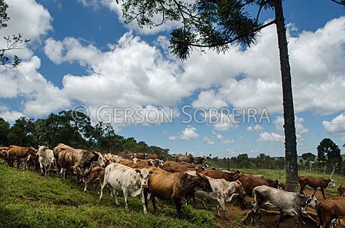 Keywords: Pine, Rural, Landscape, Motion, Cow, Braford, Cow group, Group, Cattle Livestock, Bovine, Animal, Guarapuava, 2013, Parana, Horizontal  |