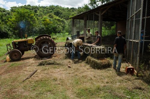 Keywords: Horizontal, Man, Adult, Rural worker, Hay, Bale, Medicago sativa, Alfafa, Fodder, Santa Amelia, 2013, Parana, Baling press, Family farming  |