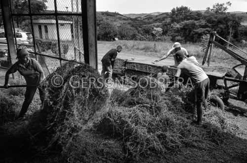 Keywords: Horizontal, Homem, Adulto, Trabalhador rural, Feno, Fardo, Enfardamento, Medicago sativa, Alfafa, Forrageira, Santa Amelia, 2013, Parana, Enfardadeira, Agricultura familiar, Preto e Branco  |
