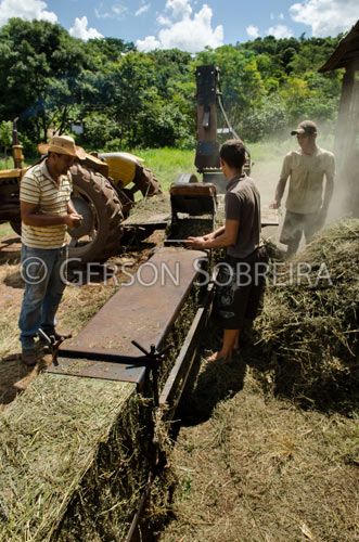 Keywords: Family farming, Vertical, Man, Adult, Rural worker, Hay, Bale, Medicago sativa, Alfafa, Fodder, Santa Amelia, 2013, Parana, Baling press  |