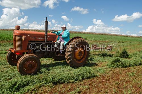 Keywords: Horizontal, Feno, Enleiradeira, Enleirador, Agricultura familiar, Mulher, Adulta, Gente, Trator, Enleirar, Enleiramento, Medicago sativa, Alfafa, Forrageira, Santa Amelia, 2013, Parana, Leguminosa, Agricultora |
