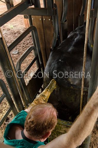 Keywords: Diagnostico de gestaçao, Vaca, Curral, Parana, 2013, Londrina, Animal, Gado Pecuaria, Bovino Bovinocultura, Brete, Veterinario, Manejo, Reproduçao, Palpaçao, Apalpando, Retal, Vertical |