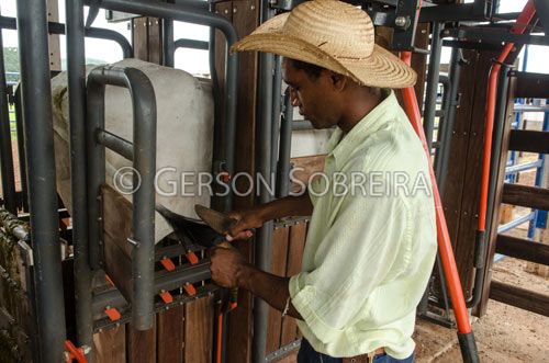 Keywords: Horizontal, Vaca, Curral, Parana, 2013, Londrina, Animal, Gado Pecuaria, Bovino Bovinocultura, Brete, Manejo, Vaqueiro Peao Cowboy, Pelo, Rabo, Aparando, Identificando |