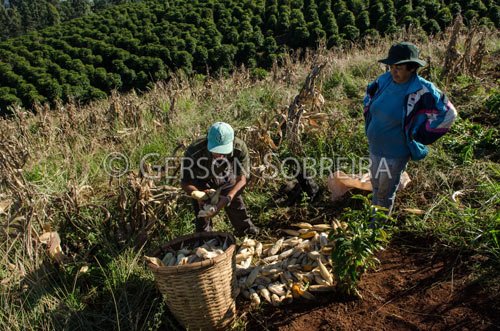 Título: Colheita de milho - Plantio consorciado com café |