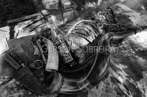 Horizontal, Garrafa, 2008, Apetrecho, Preto e Branco, Couro, Sao Paulo, Avare, Berrante, Tralha