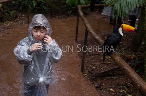 Keywords: Parana, Capa de chuva, Parque das Aves, Menino Criança, Gente, Niko, Foz do Iguaçu, 2013, Horizontal, Chuva, Chovendo, Zoologico |