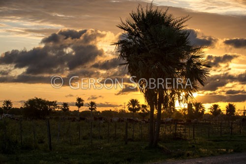 Keywords: Sunset, Horizontal, Copernicia australis, Caranda, Palm, Flora, Nature, Landscape, Paraguay, Villa Hayes, 2013, Animal, Cattle Livestock  |