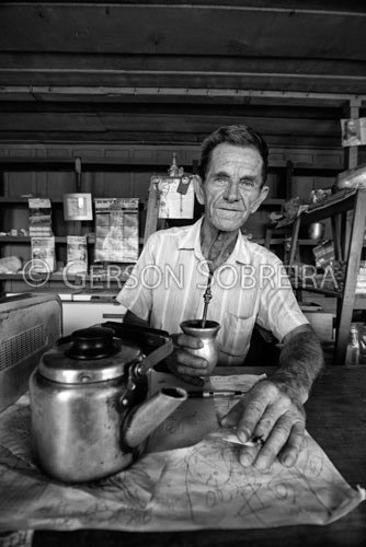 Keywords: 2014, Preto e Branco, Paieiro, Cuia, Chimarrao, Erva-mate Erva mate, Bebida, Comercio, Venda, Bar, Homem, Idoso, Gente, Prudentopolis, Parana, Vertical, Chaleira |