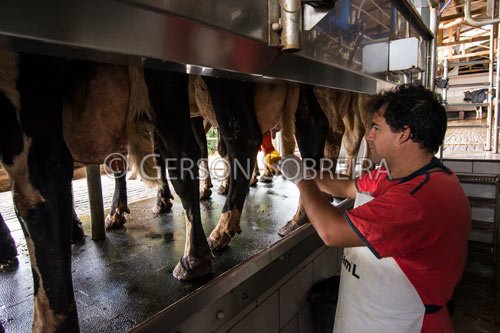 Keywords: Holstein, Holandes, Holandesa, Sala de Ordenha, Horizontal, Rolandia, Vaca, Parana, 2014, Animal, Gado Pecuaria, Bovino Bovinocultura, Mecanica, Ordenhadeira, Pos Dipping Pos-dipping, Desinfecçao, Aplicador de iodo |
