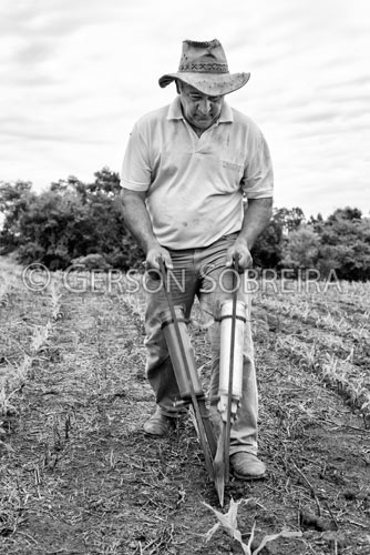 Keywords: Londrina, 2014, Parana, Agricultor, Agricultura familiar, Homem, Vertical, Plantio, Plantadeira manual, Milho |