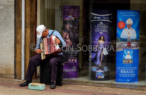 Horizontal, Musica, Sanfona, Sanfoneiro, Artista de rua, Calçadao, Urbano, Parana, Londrina, 2014, Gente