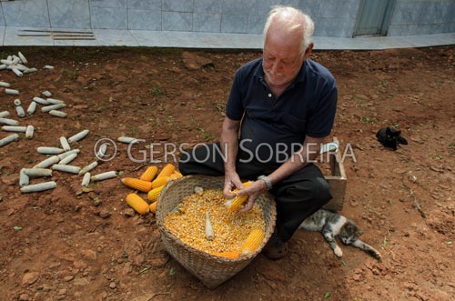 Turvo, Homem, Idoso, 2014, Parana, Horizontal, Debulhar, Debulhando, Milho, Cesto, Gato