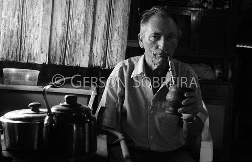 Keywords: Turvo, Cuia, Chimarrao, Erva-mate Erva mate, Horizontal, Madeira, Casa, Faxinal Carriel, Faxinalense, Agricultor, Homem, Idoso, 2014, Parana, Preto e Branco |