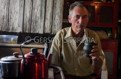 Keywords: Turvo, Parana, 2014, Homem, Idoso, Agricultor, Faxinalense, Faxinal Carriel, Casa, Madeira, Horizontal, Erva-mate Erva mate, Chimarrao, Cuia |
