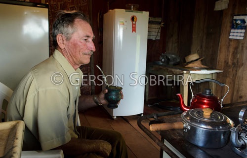 Keywords: Turvo, Fogao a lenha, Cuia, Chimarrao, Erva-mate Erva mate, Horizontal, Madeira, Casa, Faxinal Carriel, Faxinalense, Agricultor, Homem, Idoso, 2014, Parana |