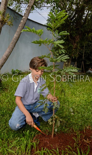 Keywords: 2014, Menino Criança, Flora, Natureza, Plantio, Arvore, Muda, Pau-Brasil, Caesalpinia echinata, Parana, Londrina, Vertical |