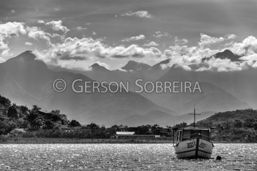 Keywords: Horizontal, Preto e Branco, Mar, Litoral, 2014, Antonina, Baia, Barco, Pico Parana, Montanha, Serra do Ibitiraquire  |