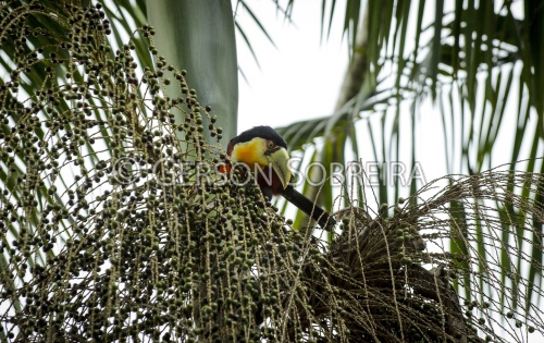 Título: Tucano-de-bico-verde na palmeira Juçara |