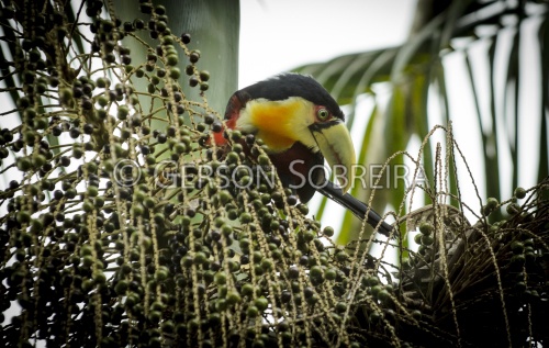 Título: Tucano-de-bico-verde na palmeira Juçara |