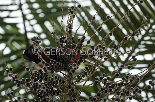Keywords: Sao Paulo, 2014, Biritiba Mirim, Fauna, Animal, Ave, Passaro, Nativo, Tucano, Tucano-de-bico-verde, Ramphastos dicolorus, Flora, Natureza, Palmeira Arecaceae, Coqueiro, Juçara, Içara, Euterpe edulis, Fruto Fruta, Comendo, Horizontal |