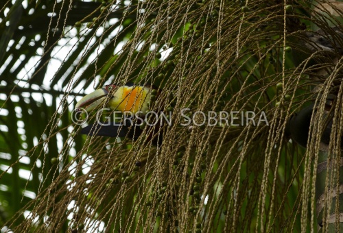 Título: Tucano-de-bico-verde na palmeira Juçara |