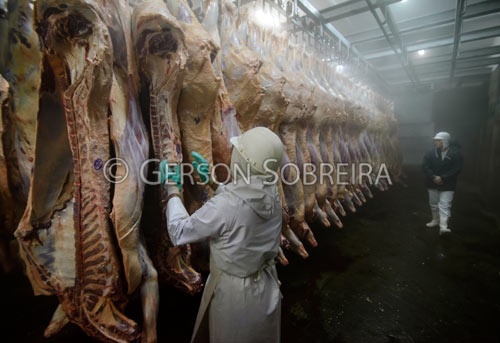 Keywords: 2014, Parana, Arapongas, Animal, Gado Pecuaria, Bovino Bovinocultura, Braford, Frigorifico, Novilha, Carcaça, Horizontal, Camara fria Camara frigorifica |