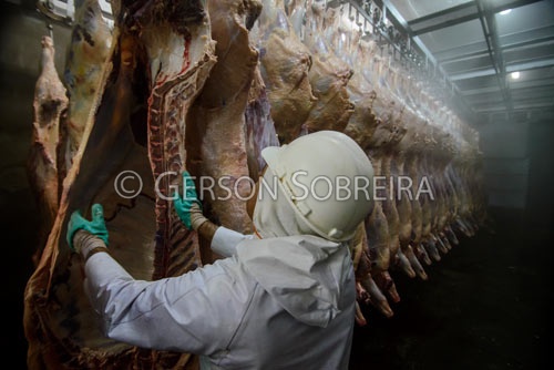 Keywords: 2014, Parana, Arapongas, Animal, Gado Pecuaria, Bovino Bovinocultura, Braford, Frigorifico, Novilha, Carcaça, Horizontal, Camara fria Camara frigorifica |