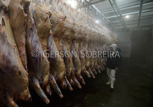 Keywords: 2014, Parana, Arapongas, Animal, Gado Pecuaria, Bovino Bovinocultura, Braford, Frigorifico, Novilha, Carcaça, Horizontal, Camara fria Camara frigorifica |