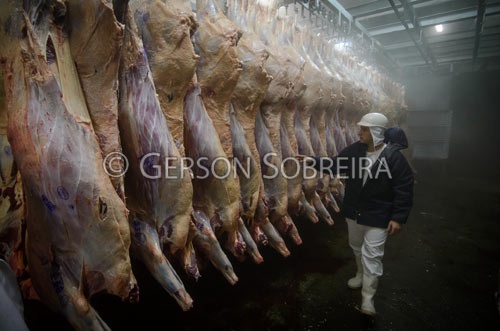 Keywords: 2014, Parana, Arapongas, Animal, Gado Pecuaria, Bovino Bovinocultura, Braford, Frigorifico, Novilha, Carcaça, Horizontal, Camara fria Camara frigorifica |