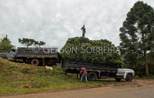 Keywords: Parana, Horizontal, 2014, Cruz Machado, Agricultura Agricola, Colheita, Transporte, Caminhao, Erva-mate Erva mate, Ilex paraguariensis |