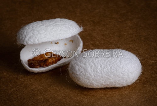 Título: Casulo de bicho-da-seda e  crisálida - Bombyx mori   |