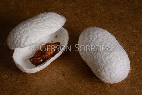 Título: Casulo de bicho-da-seda e crisálida - Bombyx mori |