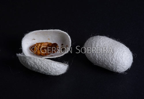 Título: Casulo de bicho-da-seda e crisálida - Bombyx mori |