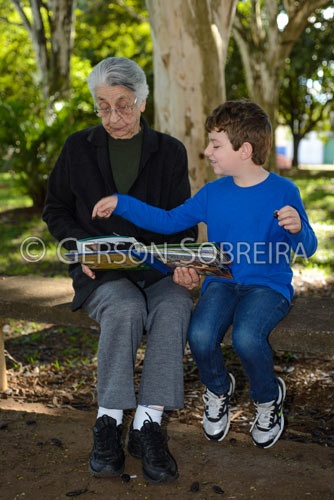 Keywords: 2014, Idosa, Livro, Sorrindo, Sorriso, Parana, Londrina, Menino Criança, Vertical, Niko, Bisavo, Avo, Neto, Leitura, Lendo |