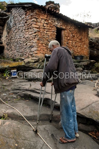 2014, Invalido, Garimpeiro, Casa de Pedra, Bahia, Mucuge, Homem, Idoso, Vertical, Muletas