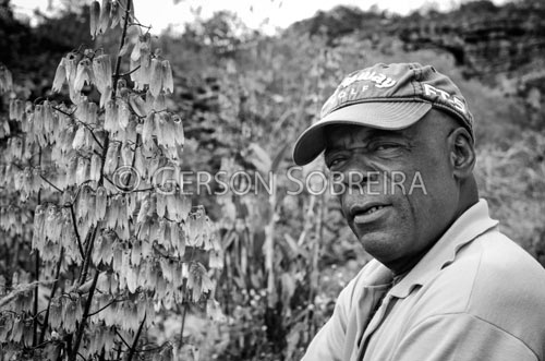 Keywords: 2014, Preto e Branco, Bryophyllum pinnatum, Horizontal, Bahia, Andarai, Igatu, Mina Brejo-Verruga, Garimpeiro, Homem, Folha-da-Fortuna |